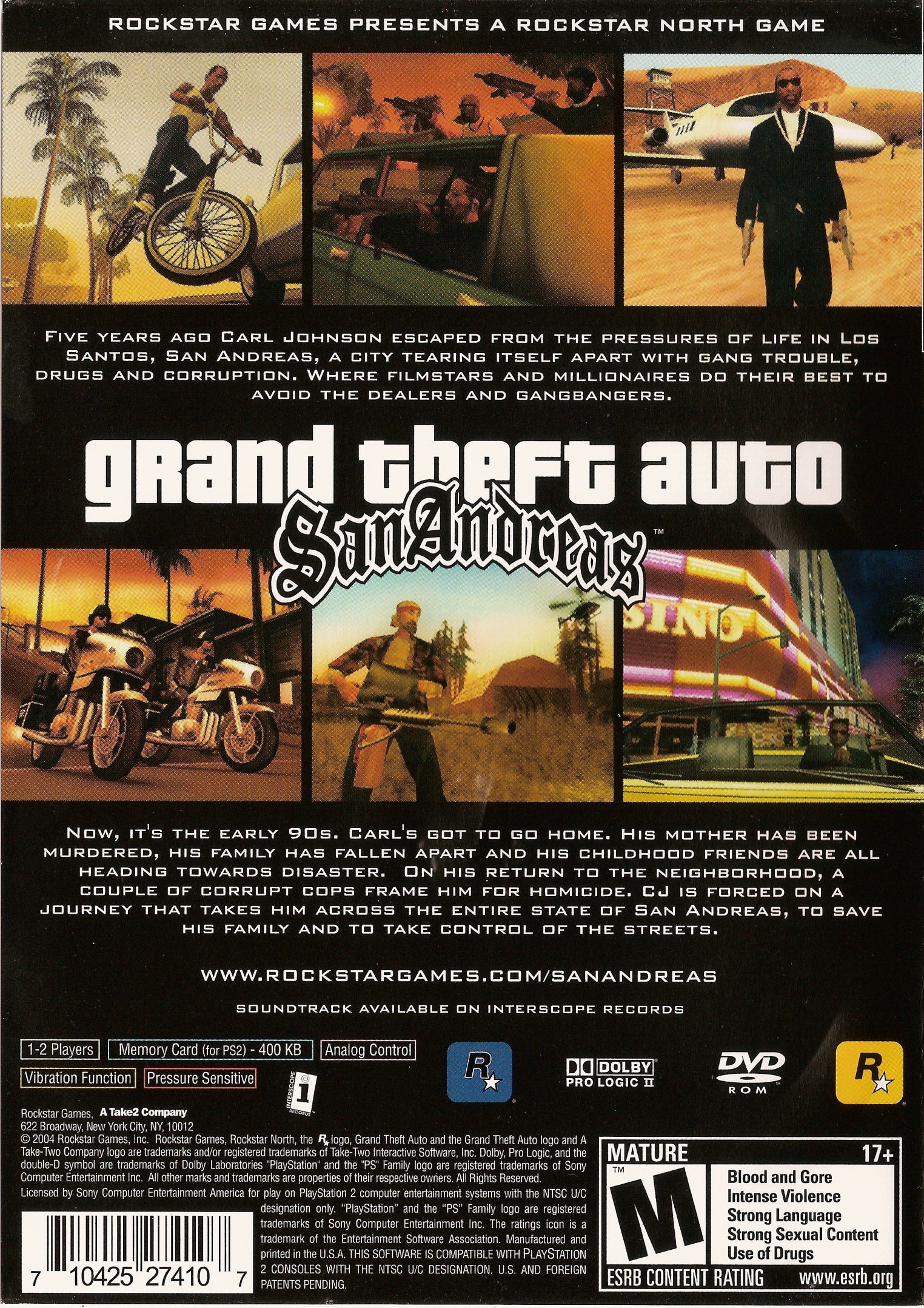 Head back to the West Coast in the 90s with Grand Theft Auto: San Andreas for the Playstation 2. As Carl "CJ" Johnson, you return to your old neighborhood only to be framed for murder and forced on a journey across the entire state of San Andreas to save your family and take control of the streets. This sprawling open-world epic features RPG-like character customization, a massive map, and an unforgettable story of gang warfare and betrayal.