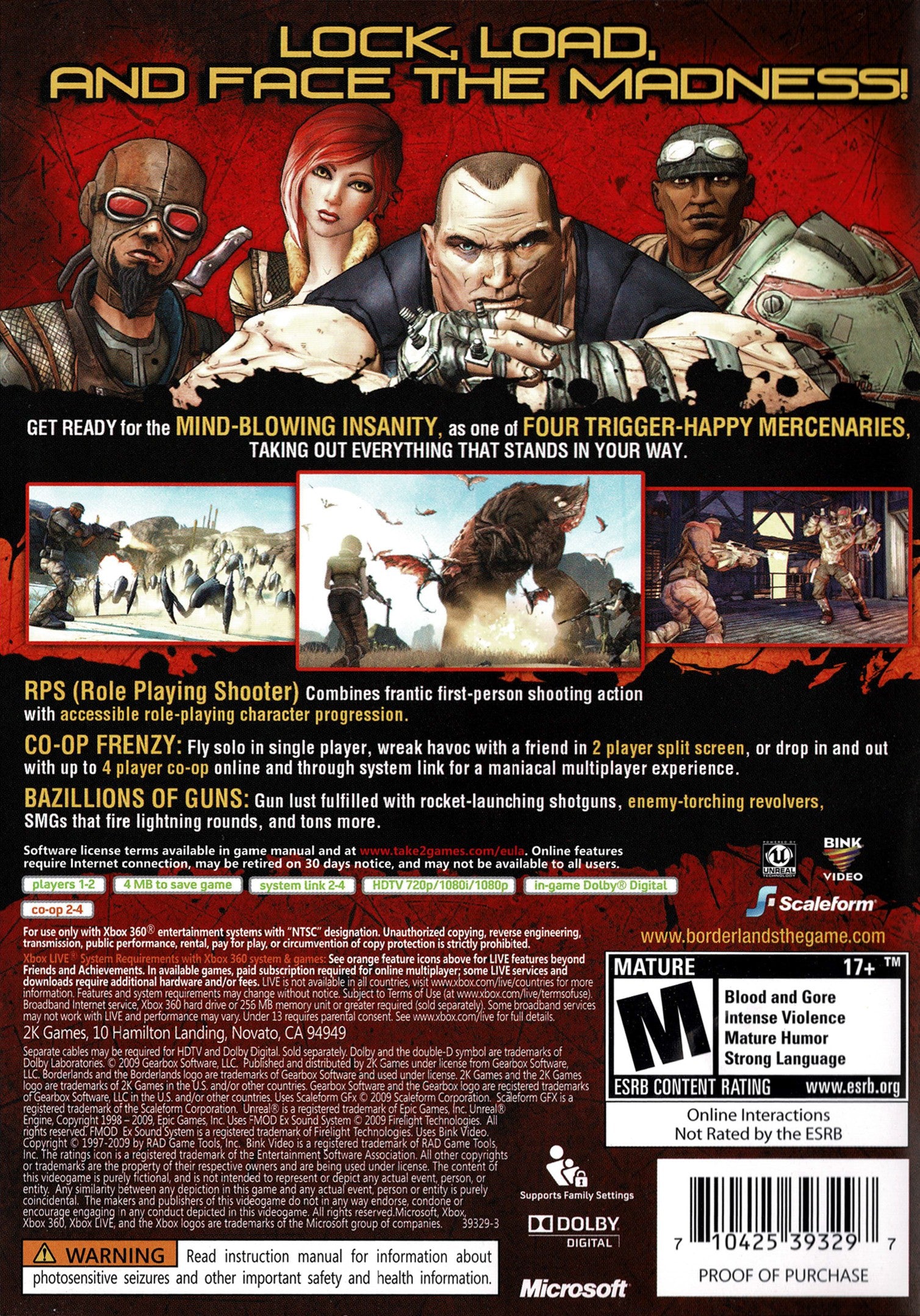 Get ready for mayhem in Borderlands for the Xbox 360, the original loot-and-shoot adventure. Journey to the savage planet of Pandora as one of four unique Vault Hunters, each with their own special skills. Blast your way through hordes of dangerous creatures and crazed bandits in search of a legendary alien vault. With a groundbreaking art style, deep RPG mechanics, and a nearly infinite arsenal of procedurally generated guns, it's a wild ride from start to finish.