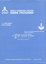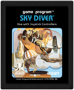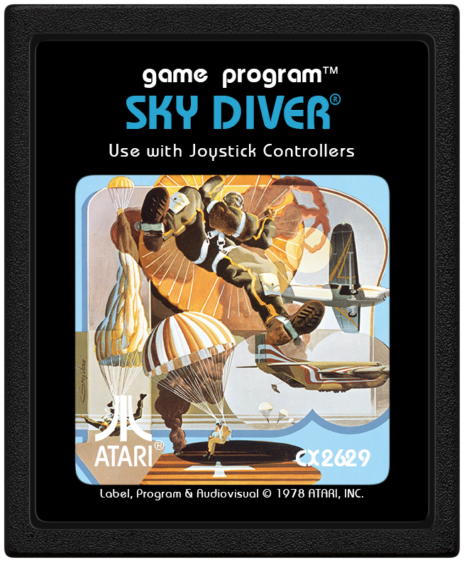 Aim for the target in the classic arcade game Sky Diver for the Atari 2600. This simple yet engaging title challenges one or two players to accurately time their parachute deployment after jumping from an airplane. Successfully guide your skydiver to land safely on a target platform while contending with wind conditions. With its minimalist graphics and straightforward gameplay, Sky Diver captured the thrill and precision of skydiving in an early video game format, offering a fun and competitive experience that tested players' timing and judgment on the pioneering console.