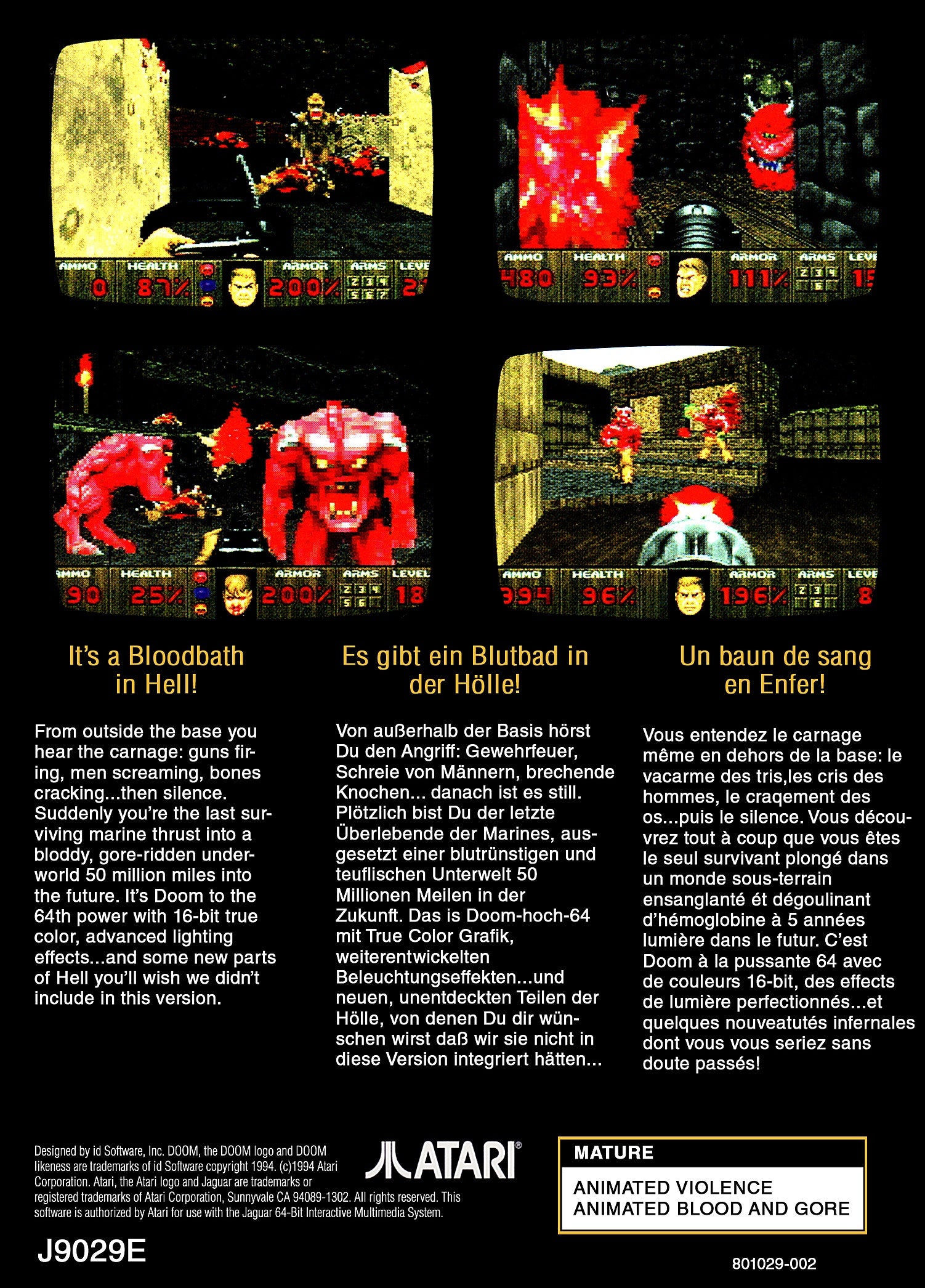 Rip and tear through the legions of Hell in Doom for the Jaguar. This classic first-person shooter drops you onto a Martian moonbase overrun by demonic forces. Battle your way through labyrinthine levels, wielding an arsenal of powerful weapons from shotguns to the iconic BFG 9000. It's a legendary and influential title that defined a genre.