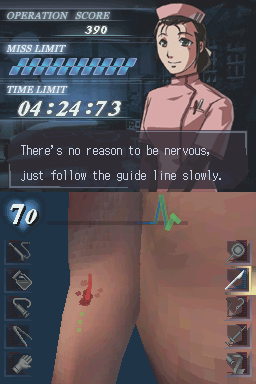 Become a life-saving surgeon in Trauma Center: Under the Knife for the Nintendo DS. As rookie surgeon Derek Stiles, you discover you possess the "Healing Touch," a mystical ability to slow time and perform incredible surgical feats. Battle deadly diseases, including a man-made parasitic illness called GUILT, by performing intricate operations using the DS touchscreen and stylus. Make precise incisions, remove tumors, suture wounds, and manage patient vitals in this intense and innovative medical simulation game that combines gripping drama with challenging, skill-based gameplay.