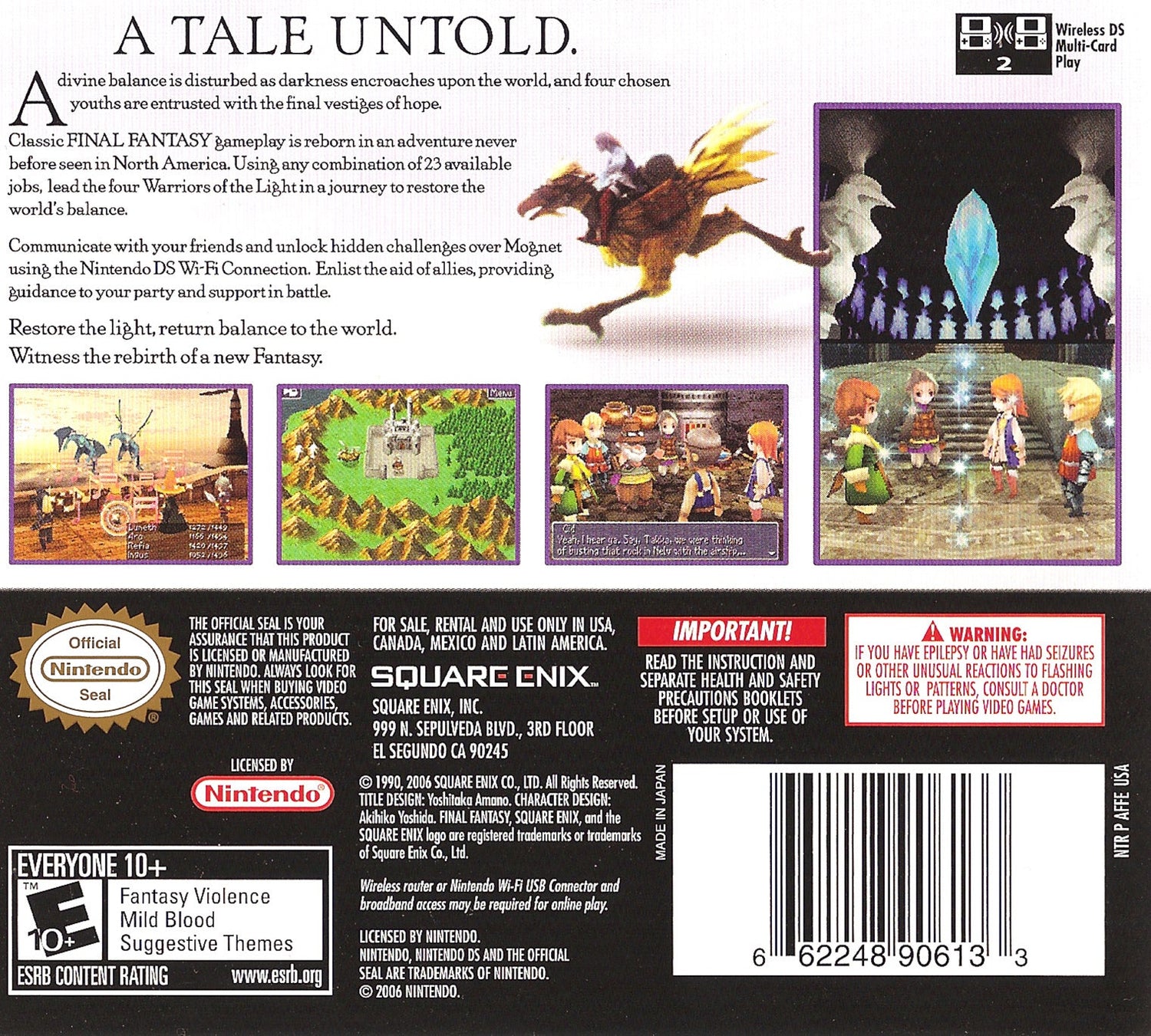 Embark on an epic journey in Final Fantasy III for the Nintendo DS, a full 3D remake of the Famicom classic. Four young orphans are chosen by the crystals to become Warriors of Light and restore balance to a world threatened by darkness. Experience the innovative job system, allowing for deep character customization, as you explore a vast world, battle monsters in turn-based combat, and unravel a captivating story.