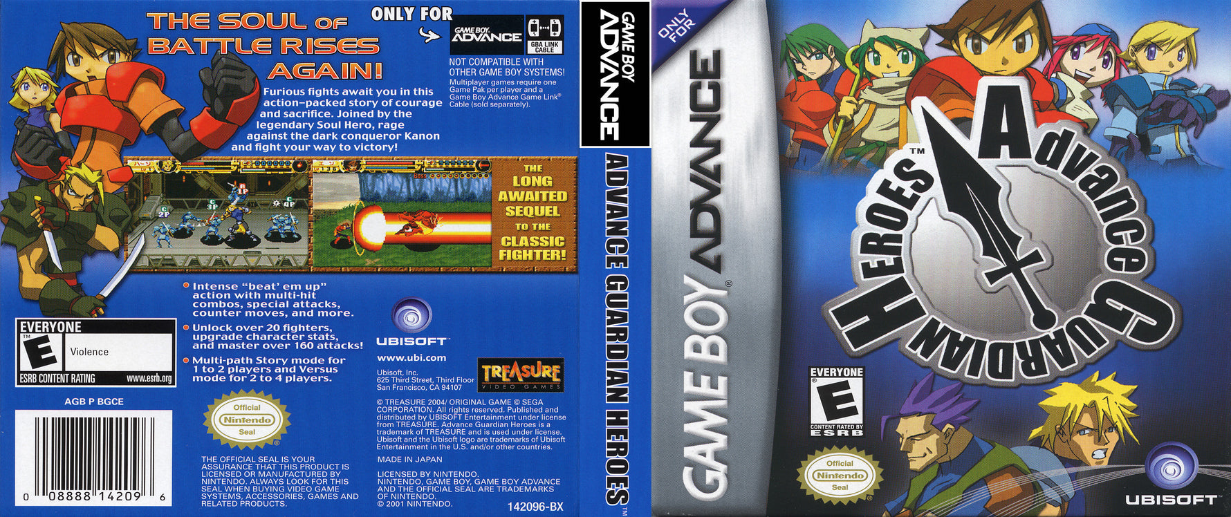 Fight to save the world from an evil wizard in Advance Guardian Heroes for the GameBoy Advance. This sequel to the Sega Saturn classic brings the intense beat 'em up action to a handheld, allowing you to choose from three new protagonists or unlock characters from the original game. Battle against the soul-stealing Zur and his resurrected army using a deep combat system that features high-flying combos, magical spells, and the ability to counterattack. The game introduces a "Devil Mode" where you can sacrifice your humanity for immense power at a terrible cost. With support for up to four players in versus mode and a cooperative story campaign, this title packs a massive punch of arcade-style brawling. Unleash your rage and become a guardian legend.