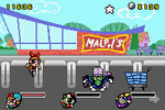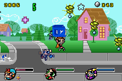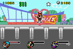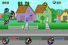 Help the Powerpuff Girls stop their arch-nemesis in The Powerpuff Girls: Mojo Jojo A-Go-Go for the GameBoy Advance. This action-packed side-scroller lets you play as Blossom, Bubbles, and Buttercup, each with their unique superpowers. Battle Mojo Jojo and his army of mischievous monkeys across various levels inspired by Townsville. Fly, fight, and utilize special abilities to defeat enemies and overcome obstacles in this engaging handheld adventure that captures the charm and action of the popular cartoon series.