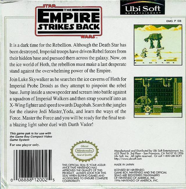 Take on the Galactic Empire in Star Wars: The Empire Strikes Back for the GameBoy. This classic action-platformer lets you relive the iconic moments of the legendary film. Play as Luke Skywalker as you navigate the ice planet of Hoth, train with Yoda on Dagobah, and confront the dark side in Cloud City. Wield your lightsaber and use the Force to battle Imperial stormtroopers, droids, and fearsome creatures. This challenging retro title captures the spirit of the movie and offers a true test of your Jedi skills in the palm of your hand.