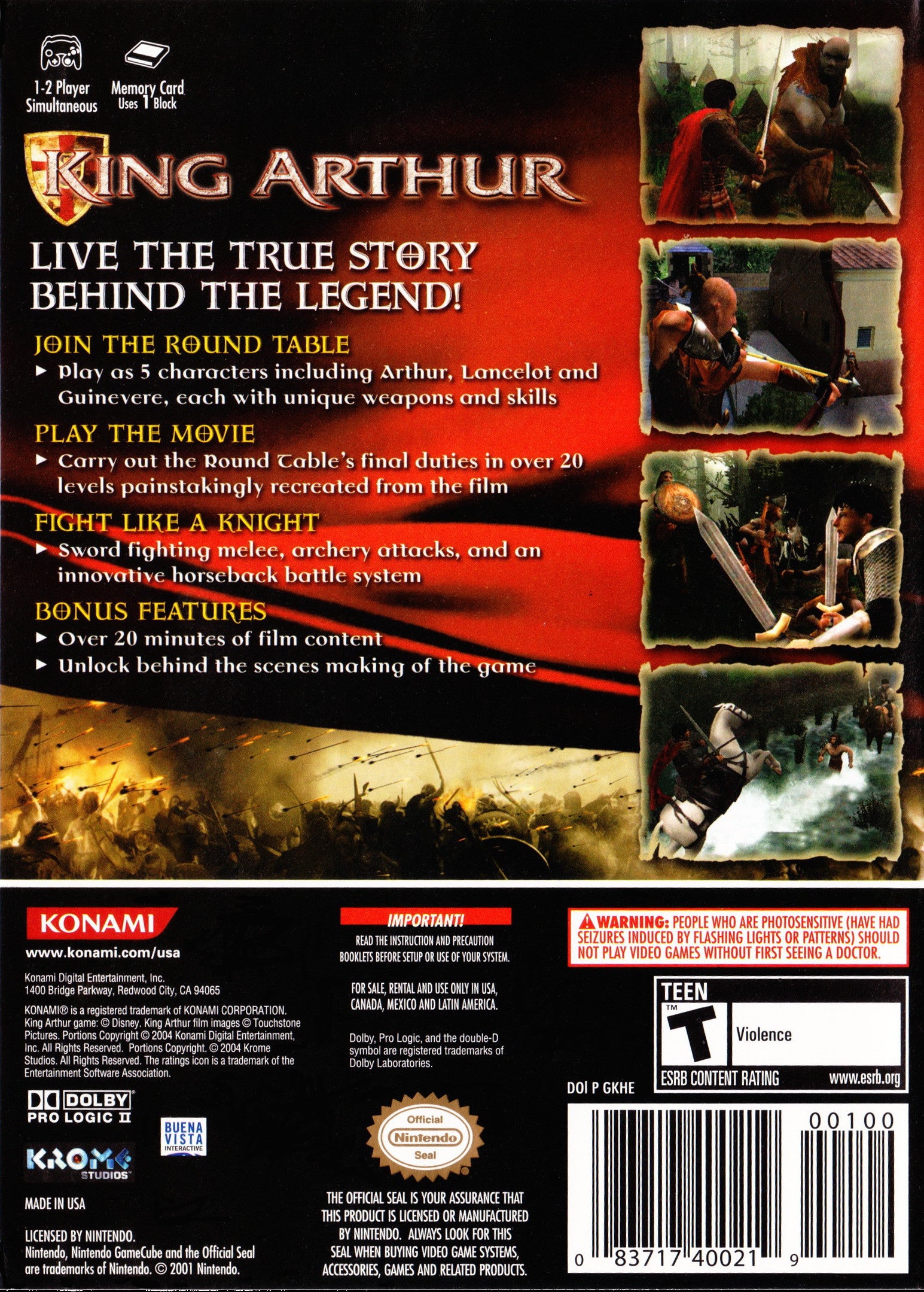 Forge your legend in King Arthur for the Gamecube, an action-adventure game based on the epic film. Lead Arthur and his loyal knights through perilous quests and intense battles as you strive to unite Britain. Master sword fighting, archery, and horseback combat across a war-torn landscape. Command your knights in strategic skirmishes, utilizing their unique abilities to overcome formidable foes. Experience the grit and heroism of the Arthurian legend in this compelling historical adventure.
