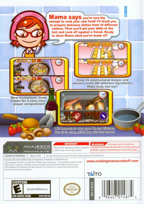 Grab your Wii Remote and get ready to cook with Cooking Mama: Cook Off for the Wii. This party-style cooking game brings the fun of the hit handheld series to your TV. Compete against Mama or a friend in a variety of fast-paced, motion-controlled cooking mini-games. Prepare dishes from around the world and prove you have what it takes to be a master chef.