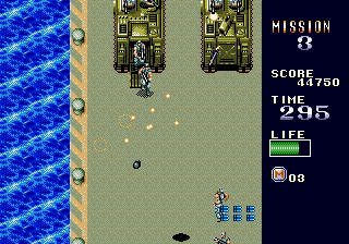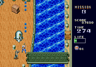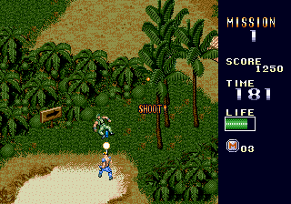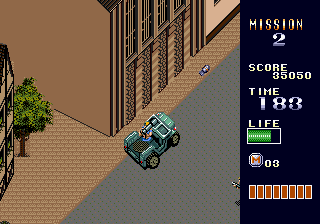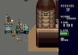 Join an elite squad of commandos and take the fight to the enemy in Mercs for the Sega Genesis. This classic top-down, run-and-gun shooter is an explosive port of the beloved arcade hit. As a member of the Mercs, you are hired to rescue a former president from a revolutionary army. Choose from a roster of five unique characters and use an arsenal of powerful weapons, from assault rifles to rocket launchers, to blast your way through enemy territory. Commandeer vehicles like jeeps and tanks to unleash even greater destruction on your mission for justice.