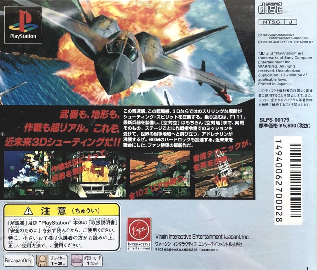 Take to the skies in intense aerial combat with Agile Warrior F-111X for the JP Playstation. Pilot the advanced F-111X fighter-bomber through a series of challenging missions, engaging enemy aircraft and ground targets. This Japanese import offers a thrilling flight combat experience with a focus on arcade-style action. The primary language in this version is Japanese, offering an authentic experience for collectors of classic Playstation shooters.