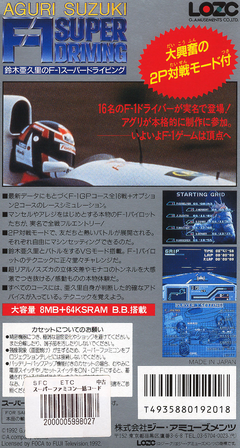 Aguri Suzuki no F1 Super Driving - Super Famicom