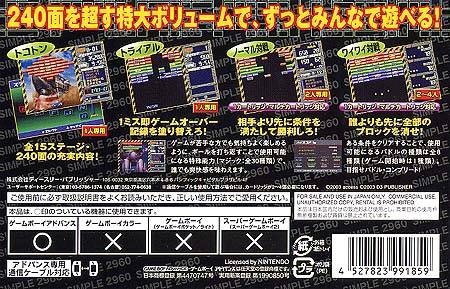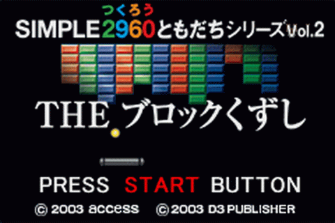 Experience pure arcade satisfaction with The Block Kuzushi, a classic brick-breaker and Japanese import for the GameBoy Advance. This title captures the timeless appeal of the genre, putting you in control of a paddle at the bottom of the screen. Your mission is to skillfully bounce a ball to demolish all the blocks in each stage. Discover and utilize a variety of power-ups that can change the size of your paddle, grant multiple balls, or even equip you with lasers to help clear the screen. For fans of retro arcade action, The Block Kuzushi delivers a simple, addictive, and endlessly replayable experience.