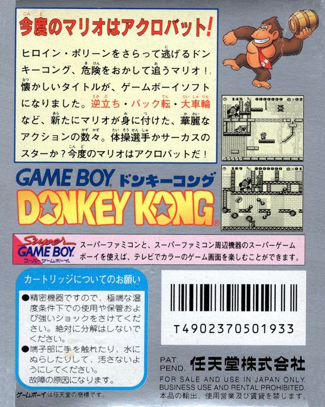 Experience a true handheld classic with Donkey Kong for the JP GameBoy. This is not just a port of the arcade original; it's a massive puzzle-platformer adventure. The first four stages recreate the iconic arcade experience, but after that, the game expands into nearly 100 new levels. As Mario, you must use your wits and acrobatics to navigate intricate stages, find keys, and unlock doors to rescue Pauline from Donkey Kong. With its clever level design and engaging mix of action and puzzle-solving, this game is a must-play masterpiece in the GameBoy library.