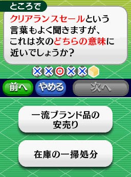 Master the world of business and finance with Nihon Keizai Shinbunsha Kanshuu for the JP Nintendo DS. Supervised by the publishers of the Nikkei, Japan's leading financial newspaper, this Japanese Import is an educational tool designed to improve economic literacy. The software challenges users with quizzes on business terminology, current events, and corporate etiquette, making it a favorite for professionals and students alike. It serves as a digital crash course in understanding market trends and navigating the professional world. With its clean interface and rigorous content, it offers a serious yet accessible way to sharpen your knowledge of the economy. Elevate your business acumen with this informative training title.