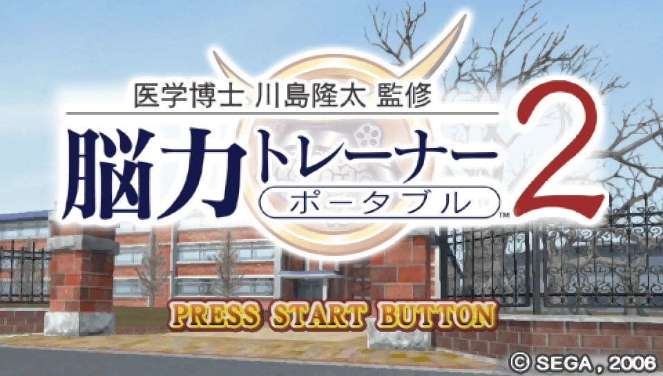 Sharpen your mind and test your mental agility in Nouryoku Trainer Portable 2 for the JP PSP. Supervised by the renowned Dr. Kawashima, this educational puzzle game offers a robust suite of brain-training exercises designed to stimulate your cortex and improve cognitive function. Players can engage in a variety of daily challenges ranging from math problems and memory tests to logic puzzles, all tracked with a "brain age" score to monitor progress over time. Perfect for short bursts of play, this title combines self-improvement with portable convenience. Whether you are looking to keep your wits sharp or simply enjoy challenging logic games, this Japanese import offers a stimulating workout for your brain on the go.