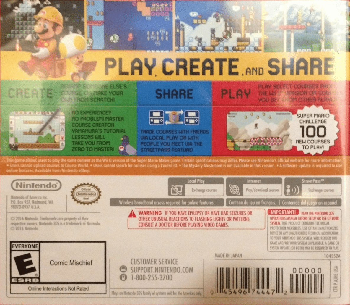 Take your kart racing to new dimensions with Mario Kart 7 for the Nintendo 3DS. Race as your favorite Mushroom Kingdom characters on land, underwater, and through the air with new hang-glider and propeller attachments. Customize your kart, compete on imaginative 3D courses, and battle friends locally or online. With new items and strategic gameplay, it's a thrilling portable Mario Kart experience.