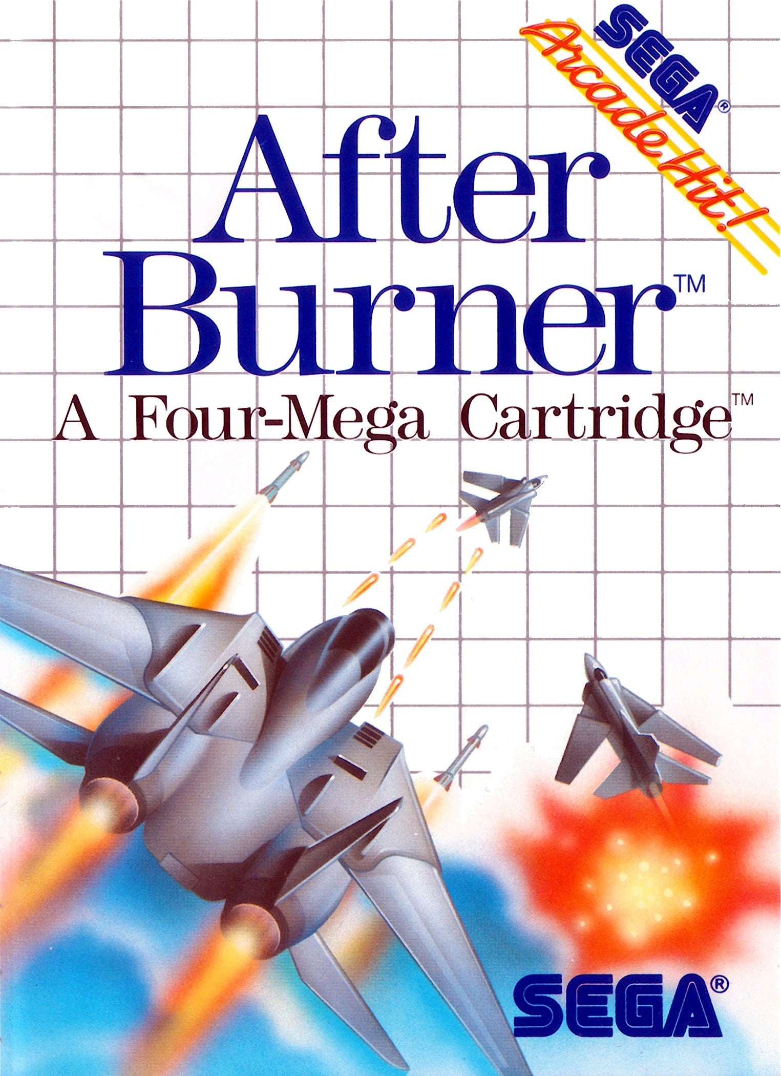 Take to the skies in classic arcade style with After Burner for the Sega Master System. Pilot a powerful F-14 fighter jet and engage in thrilling dogfights against relentless enemy forces. Dodge missiles, lock onto targets, and unleash your firepower in this fast-paced aerial combat shooter. Experience the excitement of one of Sega's most iconic arcade hits, adapted for your Master System console.