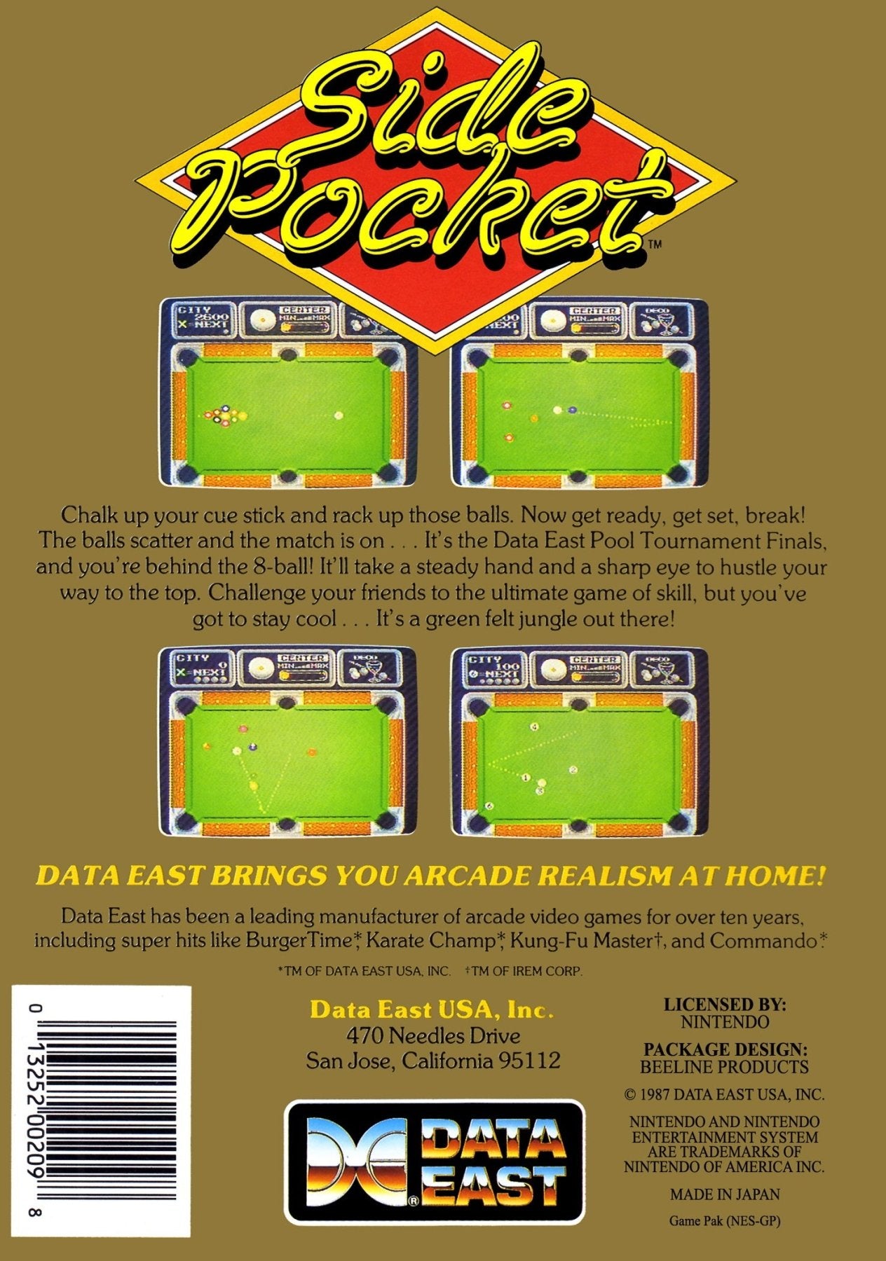 Master the angles and clear the table in Side Pocket for the NES. This classic billiards simulation offers a variety of pool game modes, including Pocket Game and 9-Ball. Line up your shots carefully, apply english to the cue ball, and sink balls into the pockets with precision. Featuring trick shot challenges and a two-player versus mode, Side Pocket provides a challenging and engaging retro pool experience. With its straightforward controls and focus on realistic (for its time) physics, it’s a beloved 8-bit title for virtual billiards enthusiasts.