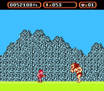Transform and power up to survive a hostile world in Amagon for the NES. As a marine stranded on a dangerous island, you must navigate a series of challenging side-scrolling levels filled with bizarre creatures. While in your human form, you are armed with a machine gun, but a single hit means defeat. By collecting the Mega-Key power-up, you can transform into the massive and powerful "Megagon," a muscular hero who can take more damage and deliver devastating punches. Master both forms to overcome the island's many perils in this quirky and difficult 8-bit action-platformer.