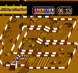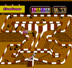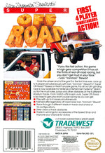 Tear up the dirt tracks in Super Off Road for the NES. This port of the popular arcade game, Ivan "Ironman" Stewart's Super Off Road, brings thrilling off-road truck racing to your console. Compete on a series of challenging, jump-filled stadium courses against AI opponents or friends. Collect cash bags scattered on the track to upgrade your truck's engine, tires, shocks, and nitro capacity between races. With its addictive gameplay, strategic upgrades, and competitive action, Super Off Road is a beloved 8-bit racing classic that offers hours of fun.