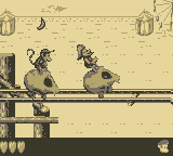 Join Diddy and Dixie Kong for a pirate-themed treasure hunt in Donkey Kong Land 2 for the GameBoy. This handheld adaptation of "Diddy's Kong Quest" brings the acclaimed platforming of the SNES original to a portable format. You venture across Crocodile Isle to rescue Donkey Kong from Kaptain K. Rool. The game features the same tag-team gameplay, allowing you to switch between Diddy's agility and Dixie's ponytail twirl. With impressive pre-rendered graphics, challenging level design, and animal buddies like Rambi the Rhino and Squitter the Spider, this Player's Choice title is a robust platforming adventure.