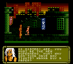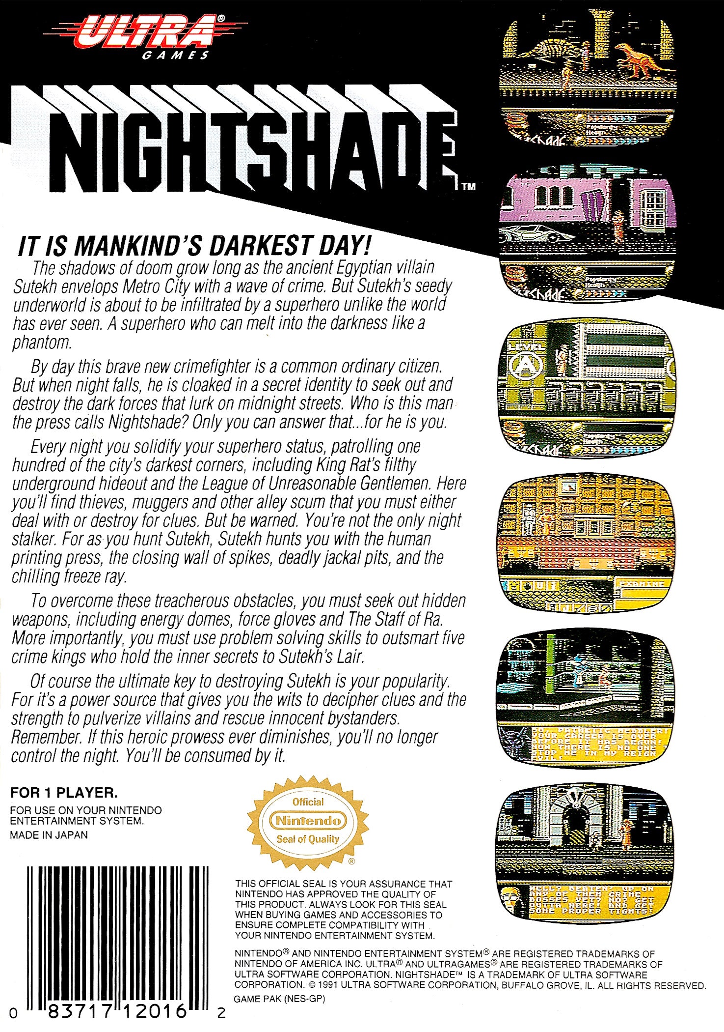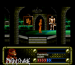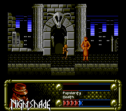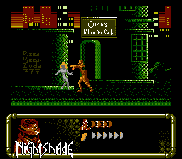 Become the superhero Metro City deserves—or at least the one it’s stuck with—in Nightshade for the NES. This unique cult classic blends point-and-click adventure mechanics with side-scrolling action, casting you as a trench-coat-wearing vigilante seeking to stop the evil Sutekh. Unlike traditional heroes, you must earn your reputation by performing good deeds and solving puzzles using a distinct menu interface to examine and interact with the world. When talk fails, engage in fistfights where your "Popularity" meter serves as your health. With its noir style, tongue-in-cheek humor, and inventive gameplay, Nightshade stands out as a one-of-a-kind 8-bit experience. The shadows are your ally.