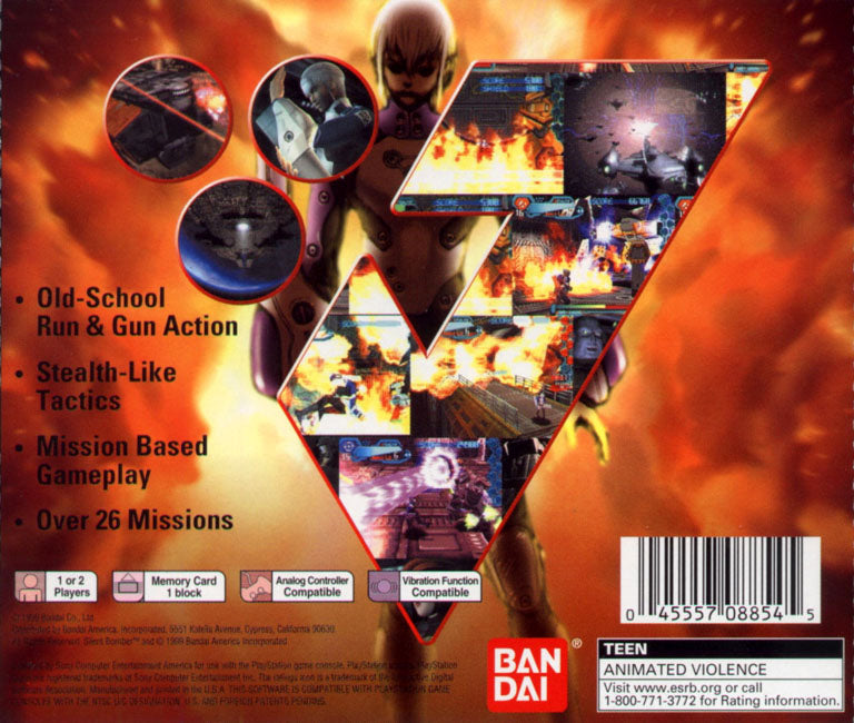 Redefine explosive arcade combat in Silent Bomber for the PlayStation. This adrenaline-pumping, fast-paced action game abandons traditional firearms, putting you in the role of Jutah Fate, a genetically enhanced super-soldier armed exclusively with highly destructive, plantable explosives. Players must navigate through futuristic top-down environments, strategically laying down network bombs and detonating them to obliterate swarms of robotic enemies and colossal cybernetic bosses. The gameplay requires incredible reflexes and constant movement, combining fluid dashing mechanics with deep, tactical blast chaining to maximize your destructive output. Featuring a gripping single-player campaign, a dark sci-fi narrative, and deep weapon customization, this cult classic delivers a uniquely satisfying combat rhythm. Plant your charges, ignite the battlefield, and bring down the military empire.
