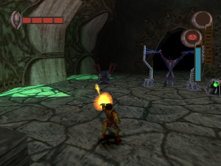 The war has moved from the toy box to the battlefield in Small Soldiers for the Playstation. Based on the hit film, this third-person action shooter lets you choose a side in the conflict between the peace-loving Gorgonites and the militaristic Commando Elite. Playing as Archer or Chip Hazard, you navigate levels filled with hazards, battling enemy toys using an arsenal of weapons like needle guns and plasma launchers. The game features a split-screen multiplayer mode where you can battle friends in various arenas. With distinct playstyles for each faction and a variety of environments to destroy, it captures the chaotic fun of the movie's toy-sized warfare.