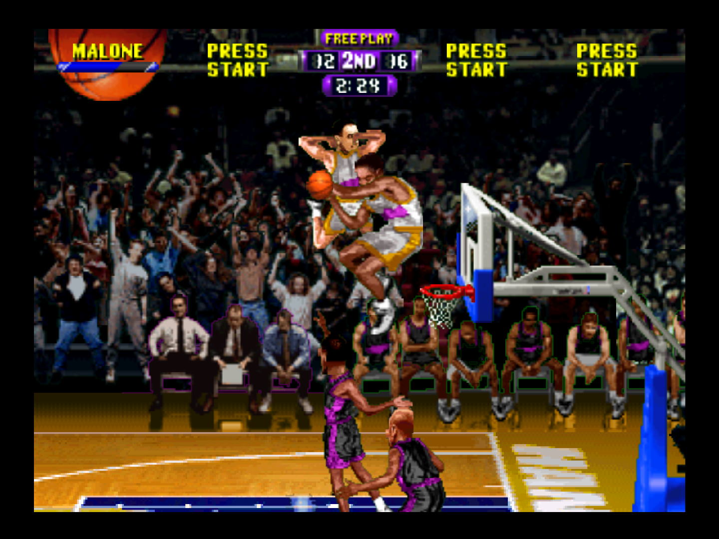 He's on fire! Experience over-the-top, two-on-two arcade basketball with NBA Hang Time for the Nintendo 64. This spiritual successor to NBA Jam features exaggerated dunks, alley-oops, and players catching fire after making consecutive shots. Create your own player, compete against NBA stars, and enjoy the fast-paced, high-flying action that made arcade basketball a phenomenon.