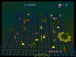 Survive relentless waves of robots in a futuristic arena with Robotron 64 for the Nintendo 64. This updated version of the classic twin-stick arcade shooter challenges you to rescue the last human family from hordes of deadly robots. Utilize dual-analog controls (or a C-button approximation) to move independently while firing in any direction. Battle a variety of menacing robot types, each with unique attack patterns, across numerous challenging levels. Robotron 64 delivers intense, fast-paced, and addictive arcade action with a retro-futuristic feel, perfect for high-score chasers.