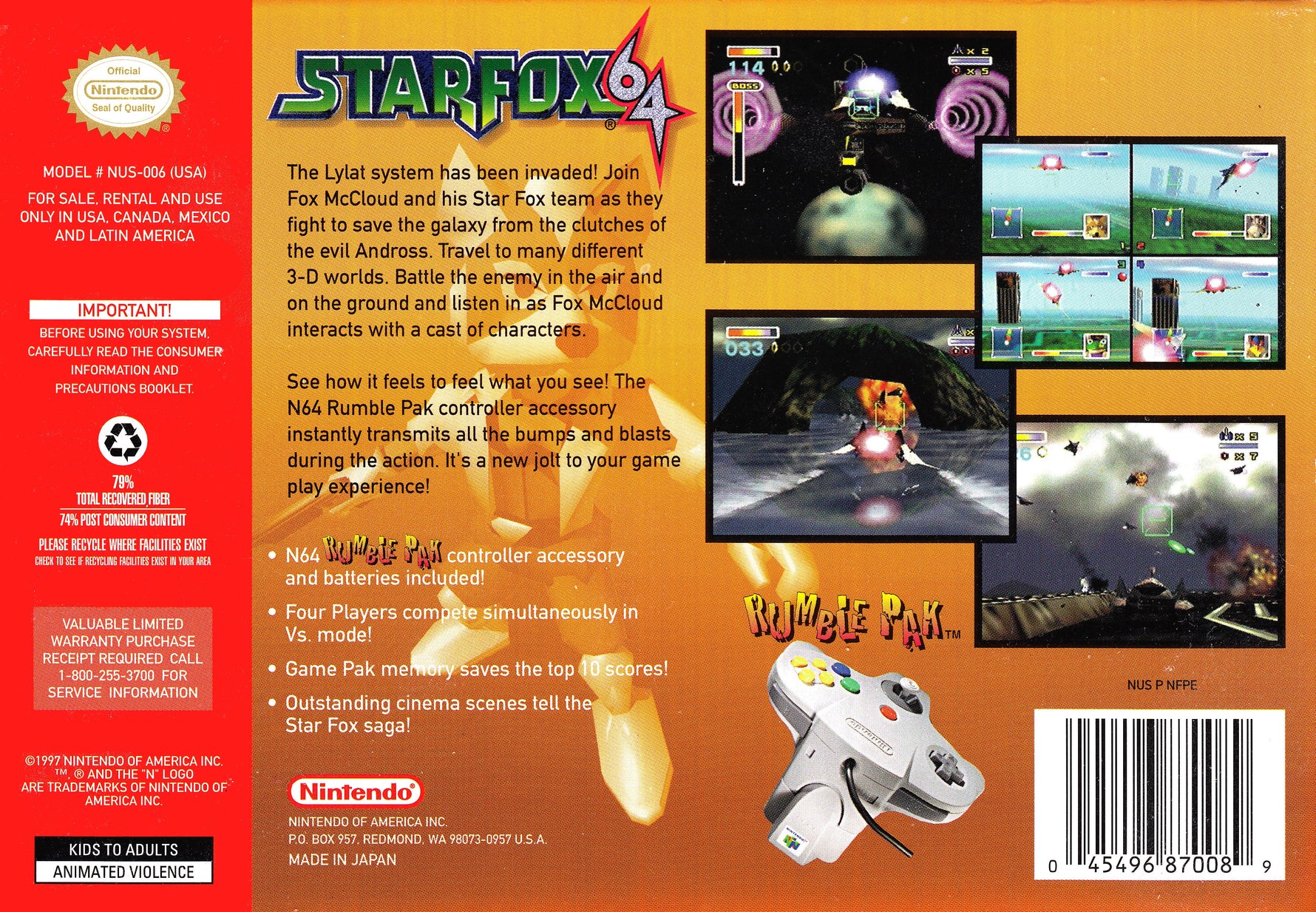 Join Fox McCloud and his squadron in the legendary Star Fox 64 for the Nintendo 64. This critically acclaimed on-rails shooter, a reimagining of the SNES original, sees the Star Fox team battling Andross's invading forces across the Lylat system. Pilot the Arwing, Landmaster tank, and Blue Marine submarine through diverse and action-packed levels, engaging in thrilling dogfights and epic boss battles. Featuring memorable voice acting, branching mission paths, and intense multiplayer modes, Star Fox 64 is a beloved N64 classic renowned for its polished gameplay and cinematic presentation.