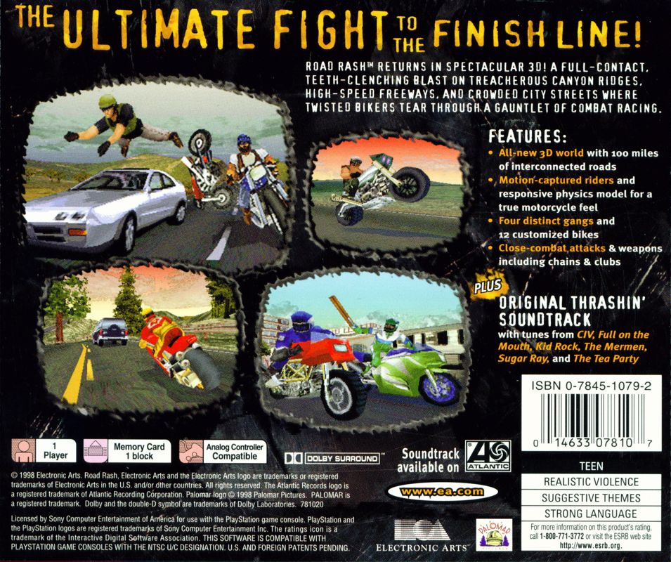 Take brutal motorcycle combat racing into the third dimension with Road Rash 3D for the Playstation. This installment brings the series' signature no-holds-barred gameplay to 3D environments, allowing you to race across varied American landscapes while battling rival bikers. Utilize punches, kicks, and an array of melee weapons to unseat your opponents, all while navigating traffic and avoiding police. Earn cash by winning races to upgrade your bike and improve your chances in increasingly difficult competitions. It's a gritty and action-packed arcade racing experience.