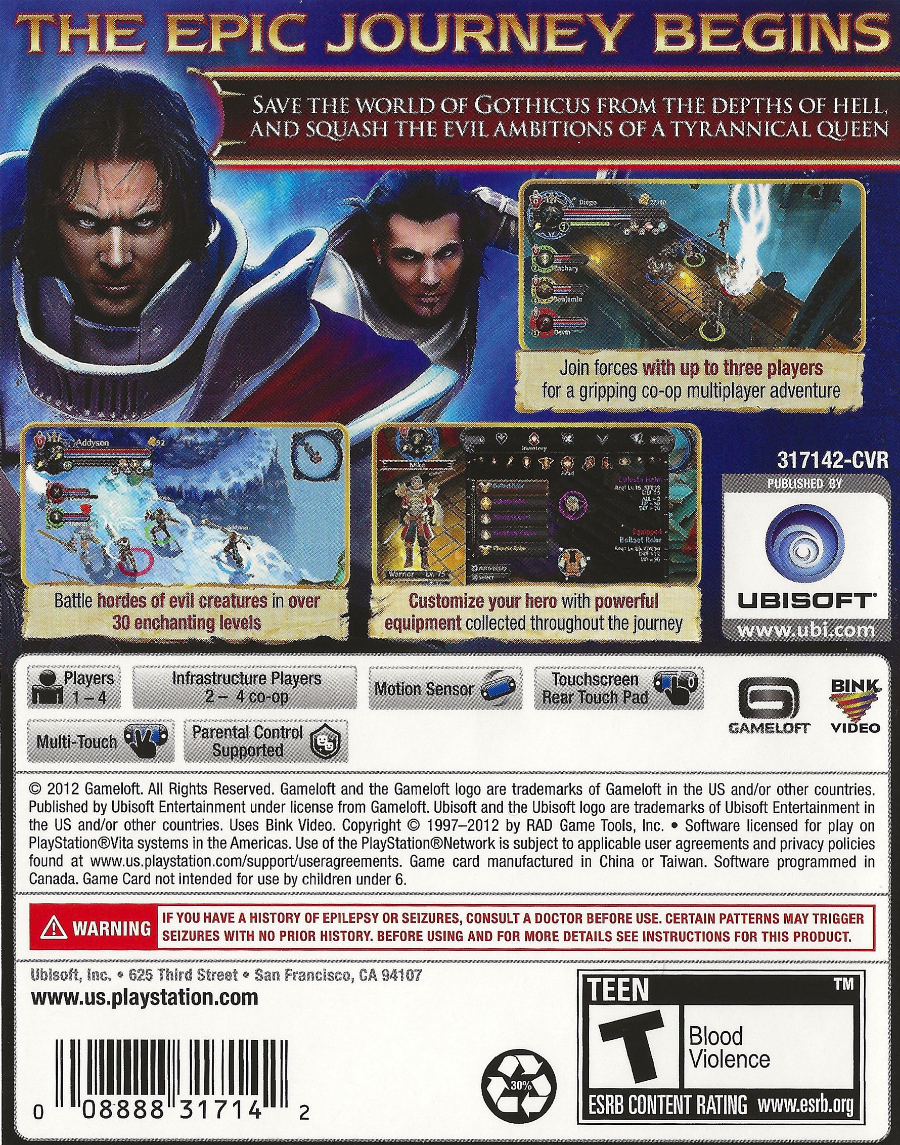 Slay hordes of monsters and hunt for epic loot in Dungeon Hunter: Alliance for the Playstation Vita. This action-RPG delivers a classic dungeon-crawling experience, perfect for on-the-go adventure. Choose your hero from multiple distinct classes, then dive into a vast gothic world on a quest to rid the land of evil. Battle your way through treacherous dungeons, defeat massive bosses, and customize your character with a near-endless supply of powerful weapons and armor. Team up with friends via online co-op to tackle the greatest challenges together in this thrilling hack-and-slash quest for glory.