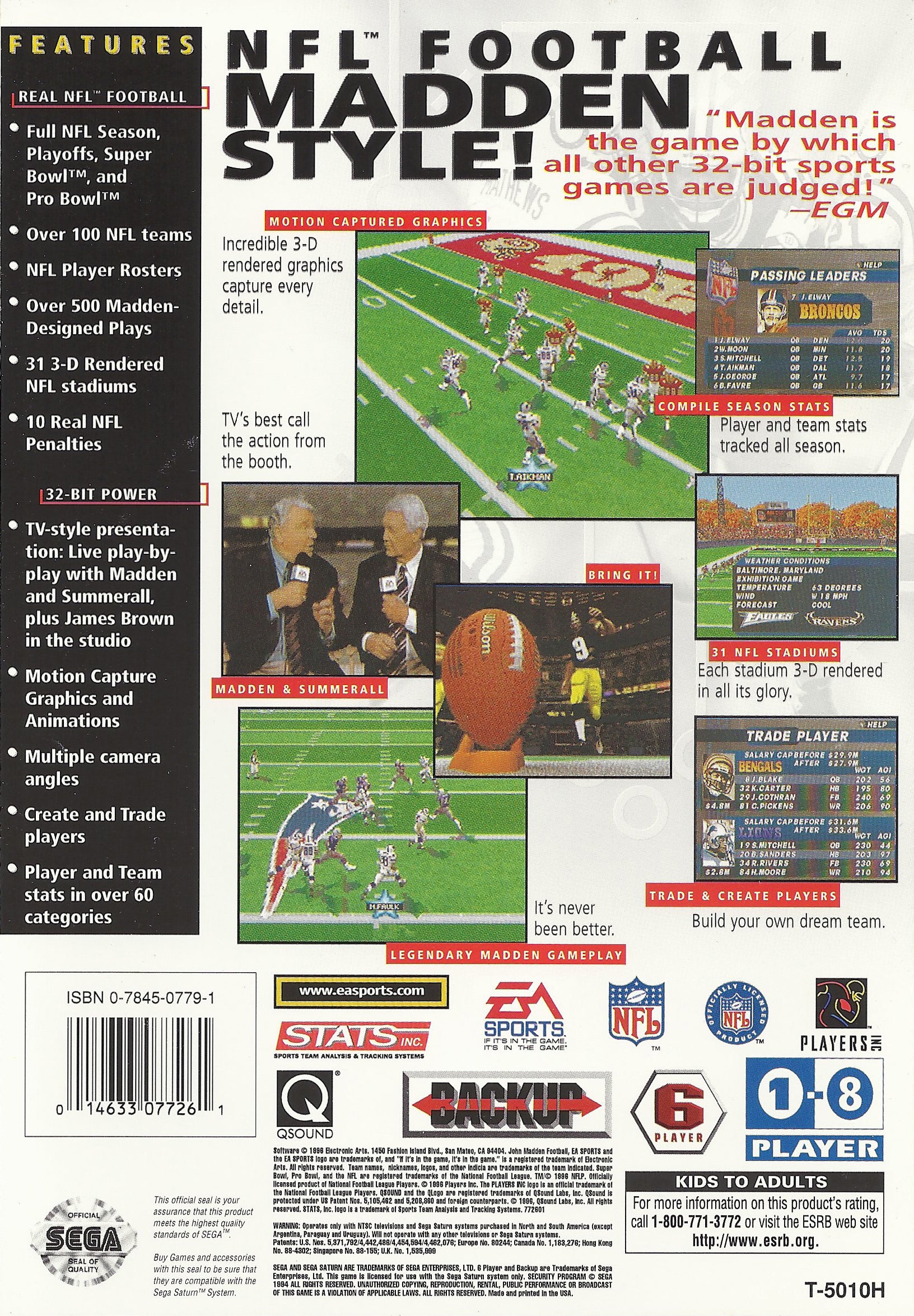 Step onto the field and experience a true classic of 32-bit sports gaming with Madden 97 for the Sega Saturn. This installment continued the evolution of the legendary football simulation franchise, offering fans the teams, players, and stadiums of the 1996 NFL season. Featuring the insightful commentary of John Madden himself, the game provides an authentic broadcast feel. Dive into the action with the series' signature deep playbook and strategic gameplay. For collectors and retro sports fans, Madden 97 is a fantastic snapshot of football gaming history, showcasing the technological leap into the 3D era on the Sega Saturn.