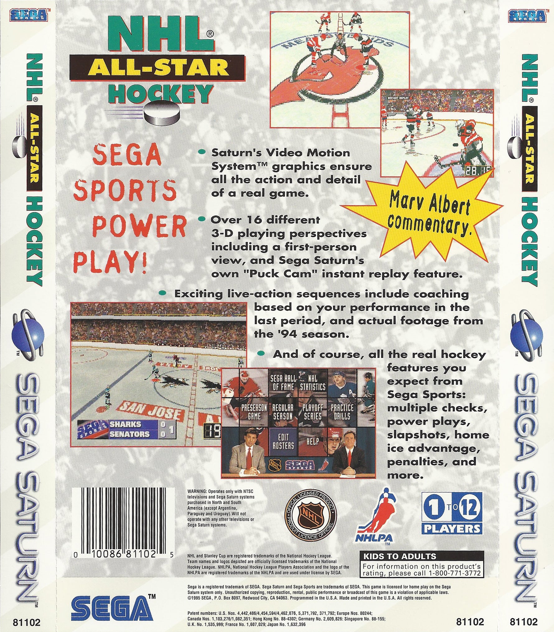 Experience fast-paced hockey with NHL All-Star Hockey for the Sega Saturn. This title brings together star players from across the league for exciting arcade-style action. Featuring smooth 3D graphics for its time, intuitive controls, and hard-hitting gameplay, you can jump into quick matches or compete in tournaments. Enjoy a more action-oriented take on professional hockey with this Saturn release.