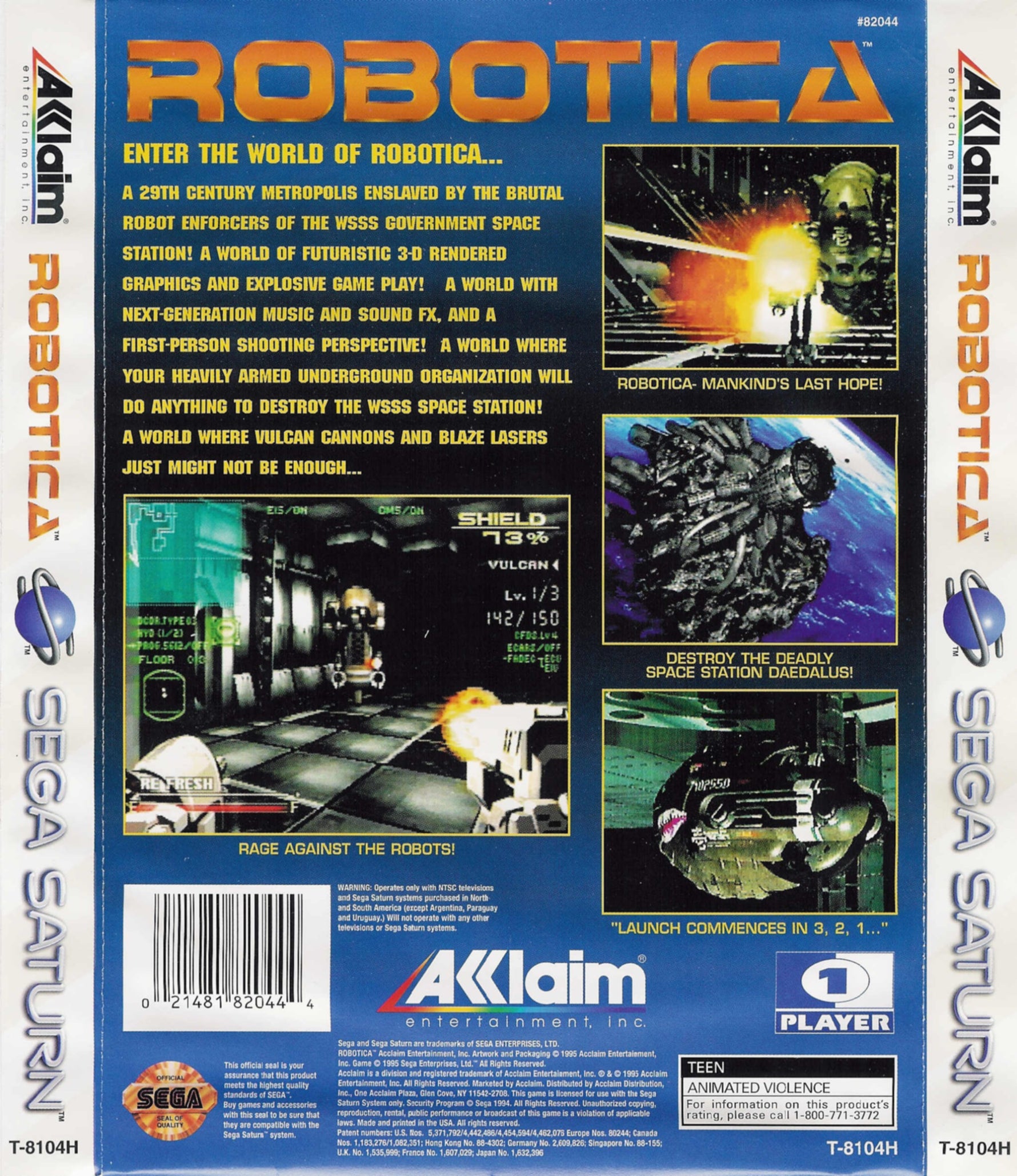 Pilot a deadly mech and navigate treacherous mazes in Robotica for the Sega Saturn. Also known as Deadalus, this first-person shooter puts you in control of a futuristic combat machine in a high-stakes televised bloodsport. Your goal is to blast your way through legions of robotic enemies and find the exit in sprawling, complex levels. The action is fast-paced and requires both sharp shooting and strategic navigation. Collect keycards, find powerful weapon upgrades, and survive the deadly arena in this challenging and atmospheric sci-fi shooter that delivers classic FPS action.