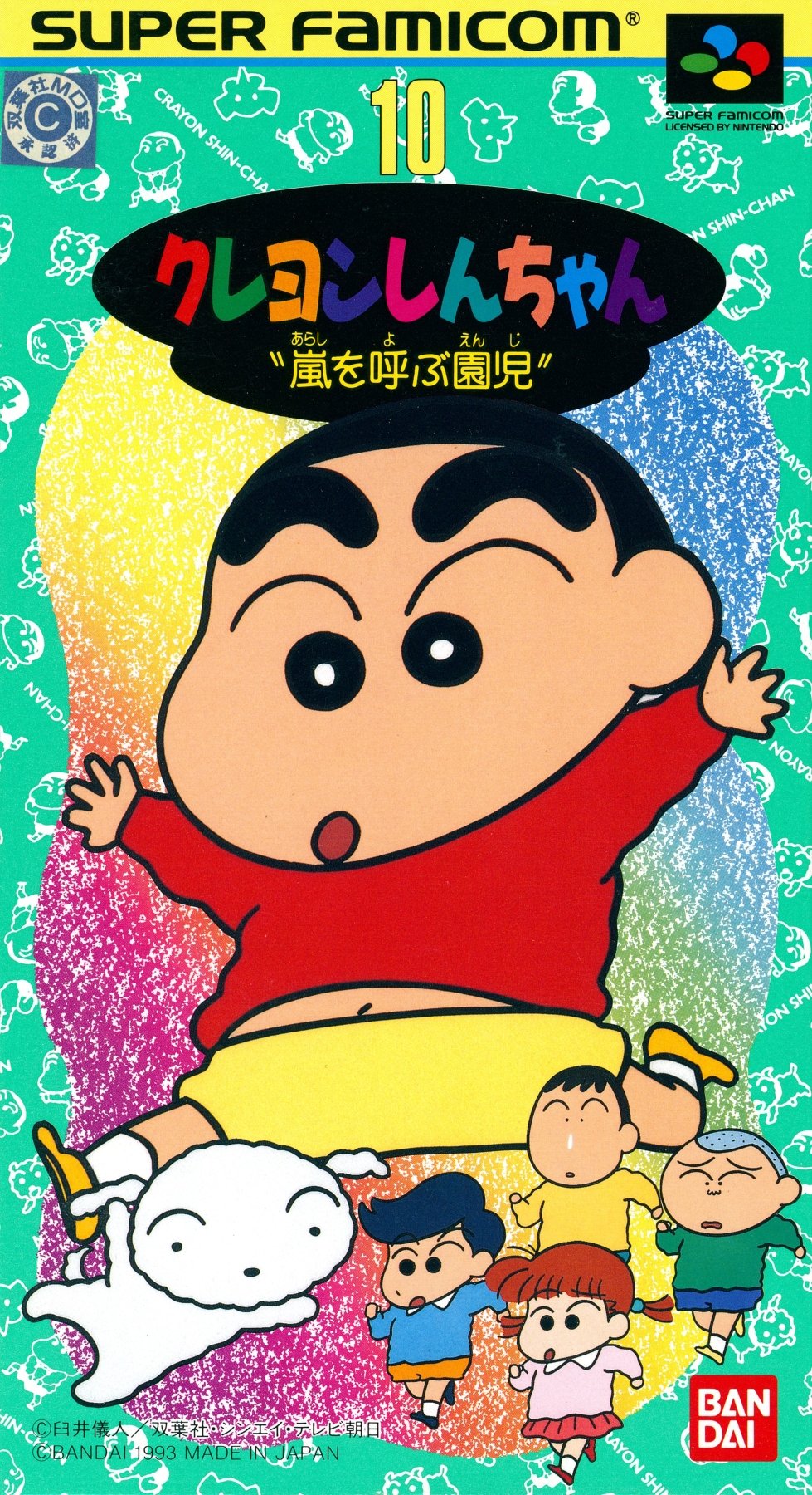 Get ready for some preschool antics with Crayon Shin-chan: Arashi wo Yobu Enji for the Super Famicom. This Japanese import is a charming and humorous side-scrolling platformer based on the popular anime series. Play as the mischievous Shin-chan as he navigates through a variety of colorful levels, encountering familiar characters and getting into all sorts of trouble. It's a fun and lighthearted retro adventure.
