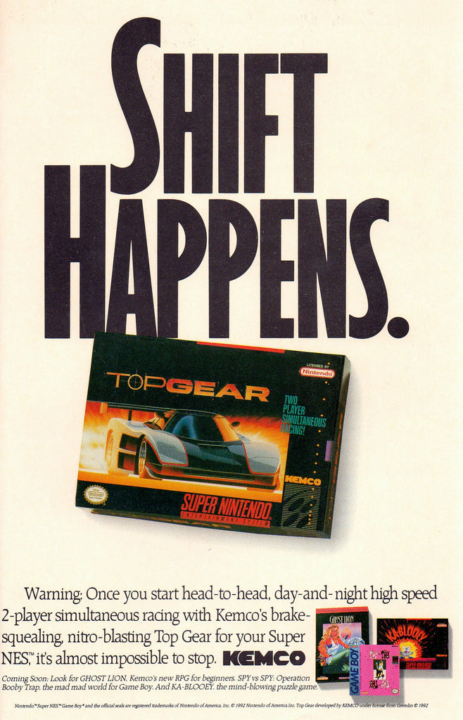 Experience thrilling arcade-style racing with Top Gear for the Super Nintendo. Choose from a selection of high-performance sports cars and compete in challenging races across diverse international tracks, from scenic countryside roads to bustling cityscapes. Utilize nitrous boosts strategically to gain an edge over your opponents, navigate tight turns, and manage your fuel consumption to reach the finish line. With its fast-paced gameplay, split-screen two-player mode, and memorable soundtrack, Top Gear delivered an exciting and beloved 16-bit racing experience that captivated a generation of SNES players, offering classic arcade fun.