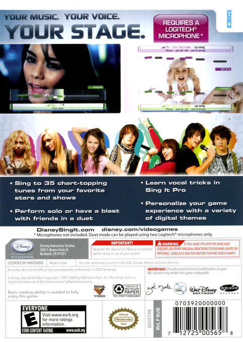 Warm up your vocal cords with Disney Sing It for the Wii. This fun and accessible karaoke game features a lineup of hit songs from popular Disney Channel artists and movies. Grab a compatible microphone, follow the on-screen lyrics, and sing your heart out. With multiplayer modes and performance feedback, it's the perfect party game for Disney fans of all ages.