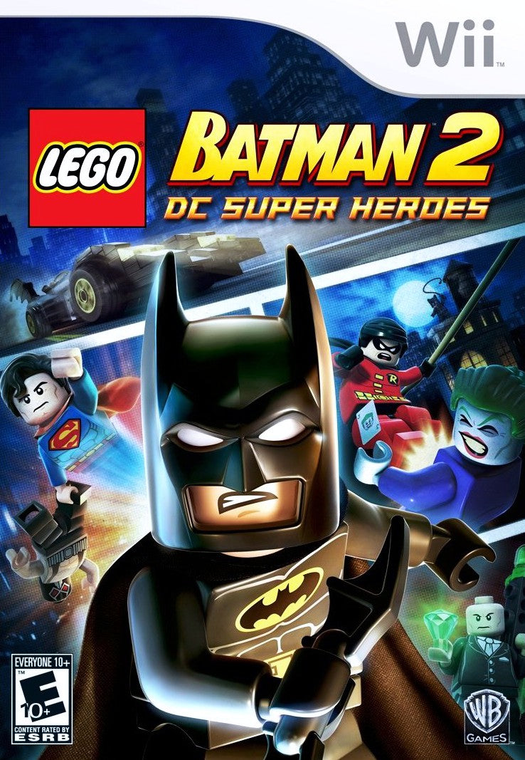 The Dynamic Duo returns with talking minifigures in LEGO Batman 2: DC Super Heroes for the Wii. Batman and Robin join forces with other famous DC heroes like Superman, Wonder Woman, and Green Lantern to save Gotham City from the villainous alliance of The Joker and Lex Luthor. Explore a massive open-world Gotham, utilize new suits and gadgets, and unlock a huge roster of characters in this action-packed and humorous LEGO adventure controlled with the Wii Remote.
