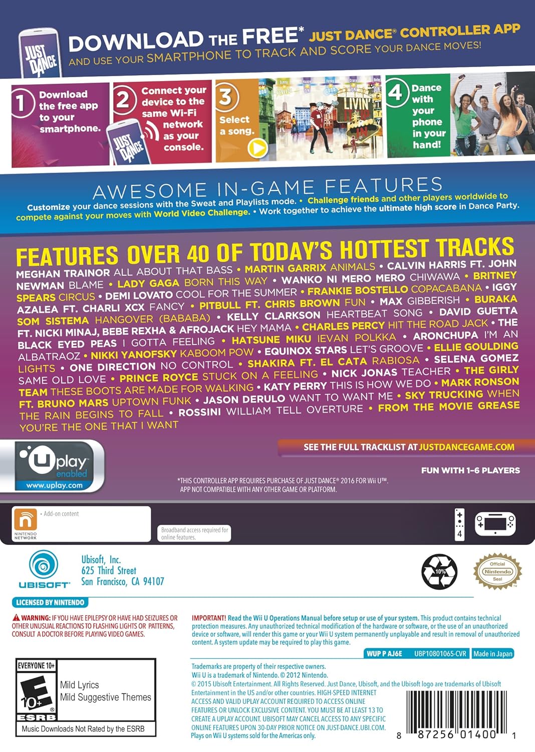 Turn up the volume and let loose with Just Dance 2016 for the Wii U, featuring an incredible tracklist of chart-topping hits and fun classics. Grab your Wii Remote and follow the dynamic on-screen choreography, or use your smartphone as a controller with the Just Dance Controller App. With a variety of game modes, including cooperative and competitive options, and new ways to play like "Dance Quests," Just Dance 2016 offers endless entertainment for dancers of all skill levels.