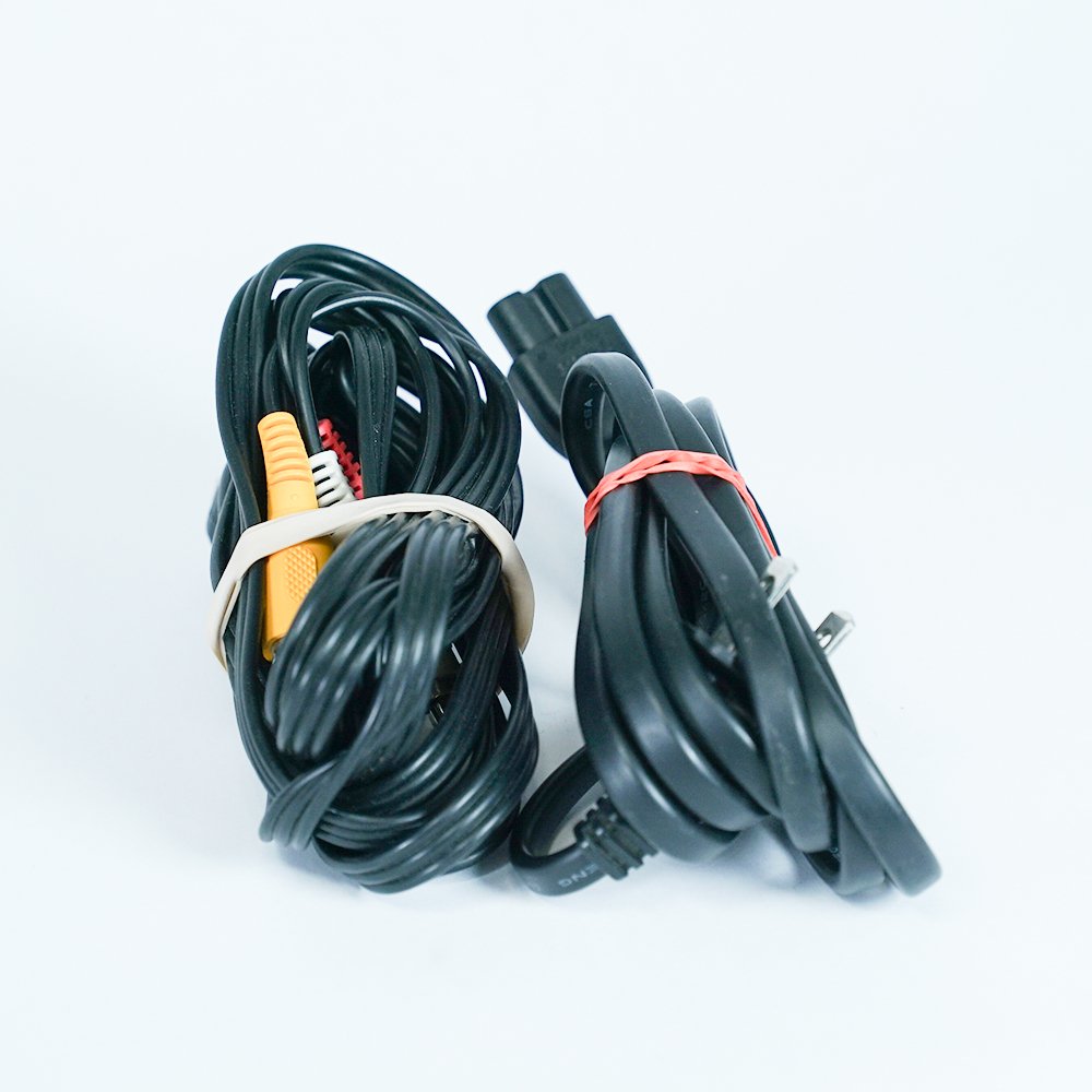 System comes with power and composite video cables. Any controllers, memory cards, or accessories must be purchased in addition to this. This is an NTSC-J system.