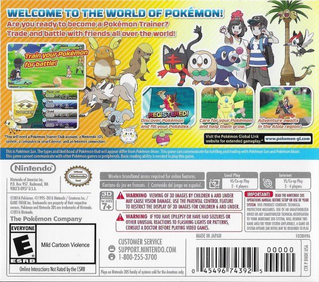 Embark on an exciting adventure in the tropical Alola region with Pokémon Sun for the Nintendo 3DS. This captivating RPG introduces a new generation of Pokémon, powerful Z-Moves that unleash devastating attacks, and the unique Island Challenge system, replacing traditional Gym battles with diverse trials. Discover Alolan forms of classic Pokémon, unravel the secrets of the Legendary Pokémon Solgaleo, and confront the mysterious Ultra Beasts. With its beautiful 3D visuals, engaging narrative, and fresh take on Pokémon traditions, Pokémon Sun offers an immersive and memorable journey for trainers of all ages.