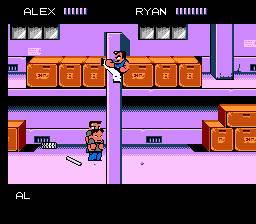 Fight your way through the mean streets to save your girlfriend in River City Ransom for the NES. This cult classic beat-'em-up combines side-scrolling brawling action with unique RPG elements. As high school students Alex and Ryan, you must punch and kick your way through gangs like "The Squids" and "The Frat Guys" to rescue Cyndi from the villainous Slick. Defeated enemies drop coins, which you can use in shopping malls to buy food for stat boosts, learn new martial arts techniques like Stone Hands and Dragon Feet, and purchase items. With its open-ended gameplay and cooperative two-player mode, River City Ransom remains a beloved and innovative retro title.