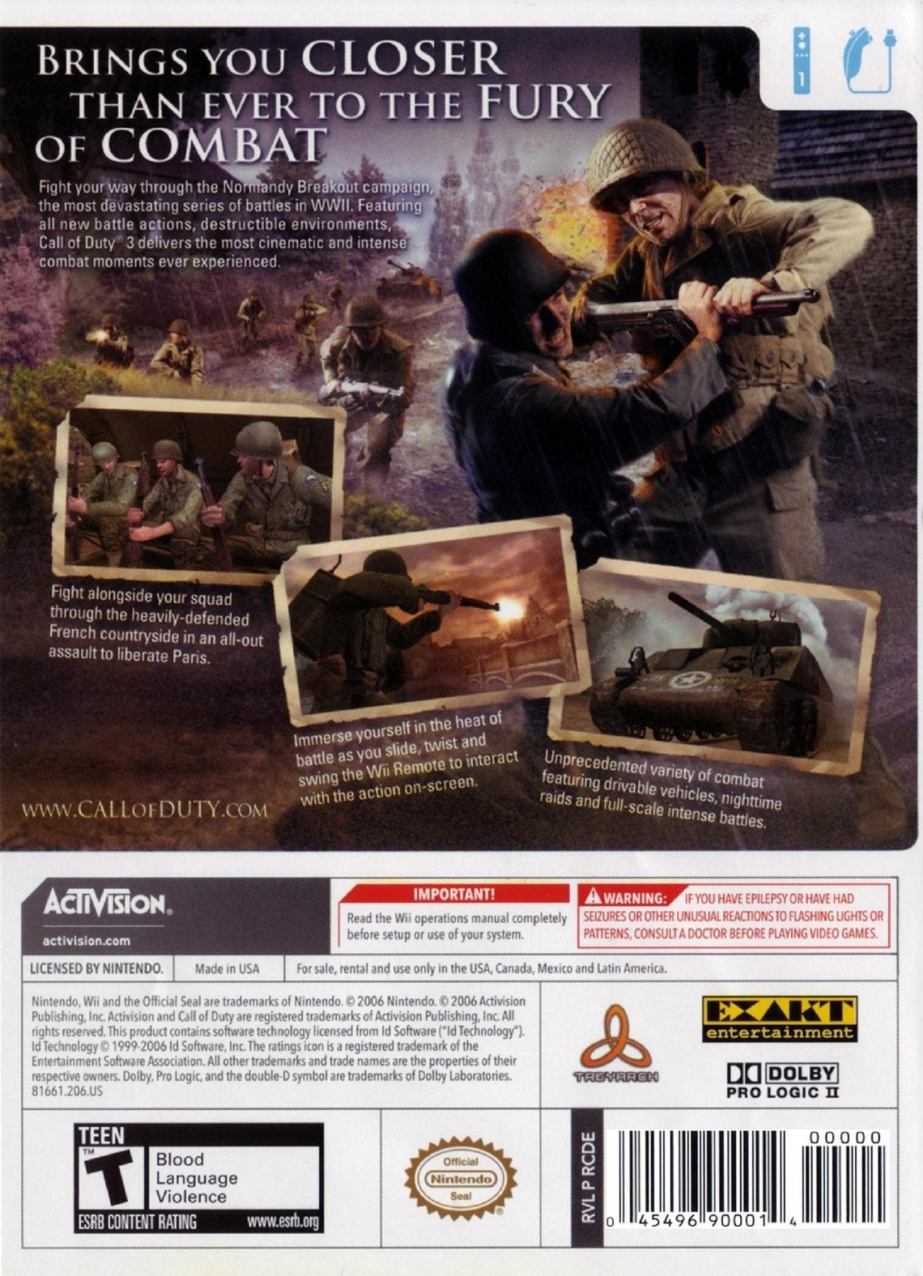 Experience the visceral intensity of World War II combat in Call of Duty 3 for the Playstation 3. This first-person shooter thrusts you into the heart of the Normandy Breakout campaign. Fight as soldiers from four Allied nations, experiencing diverse gameplay and a continuous narrative. With its focus on close-quarters battles and cinematic action, Call of Duty 3 delivers a powerful and immersive WWII experience.