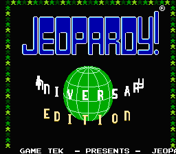 Celebrate a television milestone with Jeopardy! 25th Anniversary Edition for the NES. This special version of the classic quiz show game features updated questions and categories, commemorating 25 years of America's favorite answer-and-question program. Compete against AI opponents, test your trivia knowledge, and strive to become the ultimate Jeopardy champion in this nostalgic retro title.