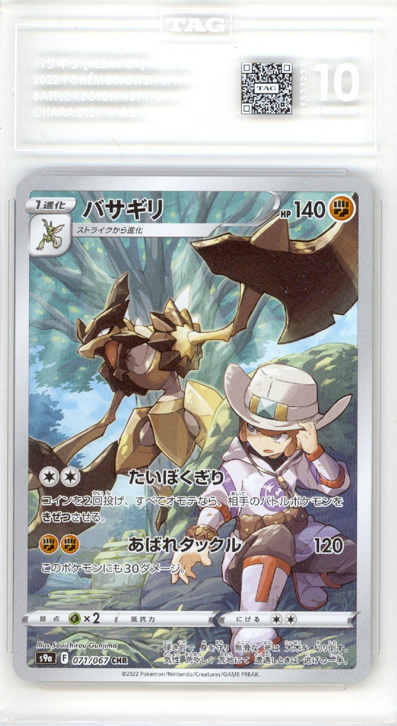 The 'Kleavor #71 - Pokemon Japanese Battle Region' Card pictured may not be the exact card you will receive. Please pay attention to which grade you order. All graded card sales are final.