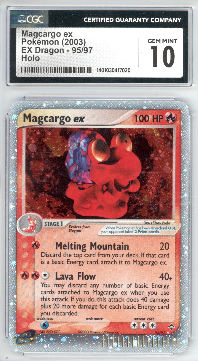 The 'Magcargo EX #95 - Pokemon Dragon' Card pictured may not be the exact card you will receive. Please pay attention to which grade you order. All graded card sales are final.