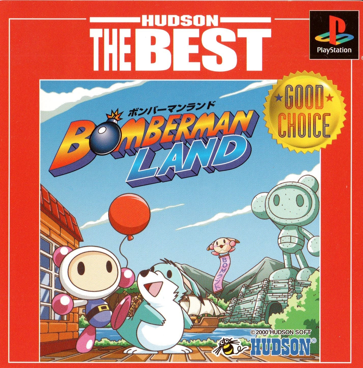 In 'Bomberman Land [Hudson the Best]' for JP Playstation, join Bomberman in this action-packed puzzle game. Solve challenges, defeat enemies, and explore a variety of unique levels in this fun and addictive series entry.