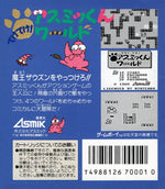 Embark on a quirky and charming adventure in Boomer's Adventure in Asmik World, a classic Japanese Import for the GameBoy. You play as Boomer, a pink, dinosaur-like creature on a quest to rescue his friends from the clutches of an evil villain. To do so, you must dig your way through a series of puzzle-like underground levels. Find keys to unlock doors, avoid enemies, and use items to your advantage to clear each stage. This engaging action-puzzle game requires both quick reflexes and careful planning to succeed, offering a unique and memorable handheld experience.