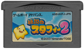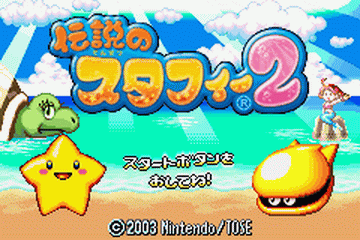 Dive into a charming underwater adventure with Densetsu no Starfy 2, a delightful Japanese import for the GameBoy Advance. This vibrant action-platformer has you guide the adorable prince Starfy through a series of colorful stages filled with friends to meet and enemies to defeat. Utilize Starfy's signature spin attack and other unique abilities to navigate tricky environments, solve light puzzles, and take on imaginative bosses. With its cheerful graphics and accessible gameplay, this title offers a classic platforming experience that is enjoyable for all ages. Embark on a whimsical journey through the deep blue sea in this GBA gem.